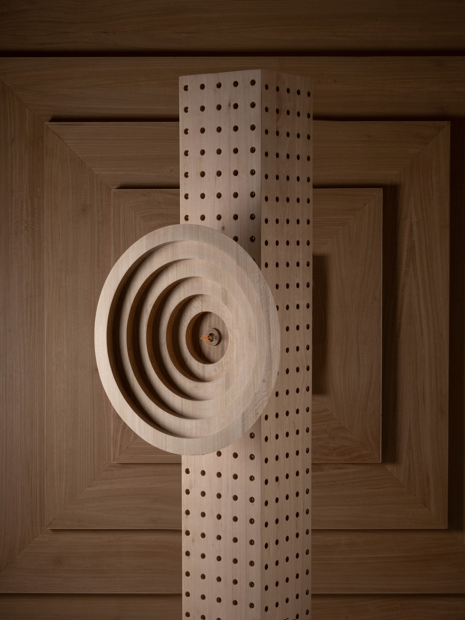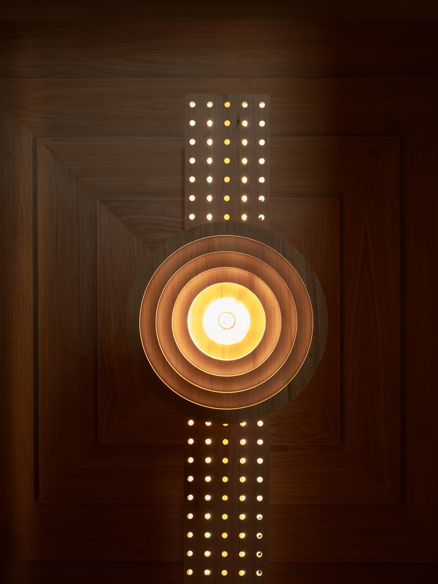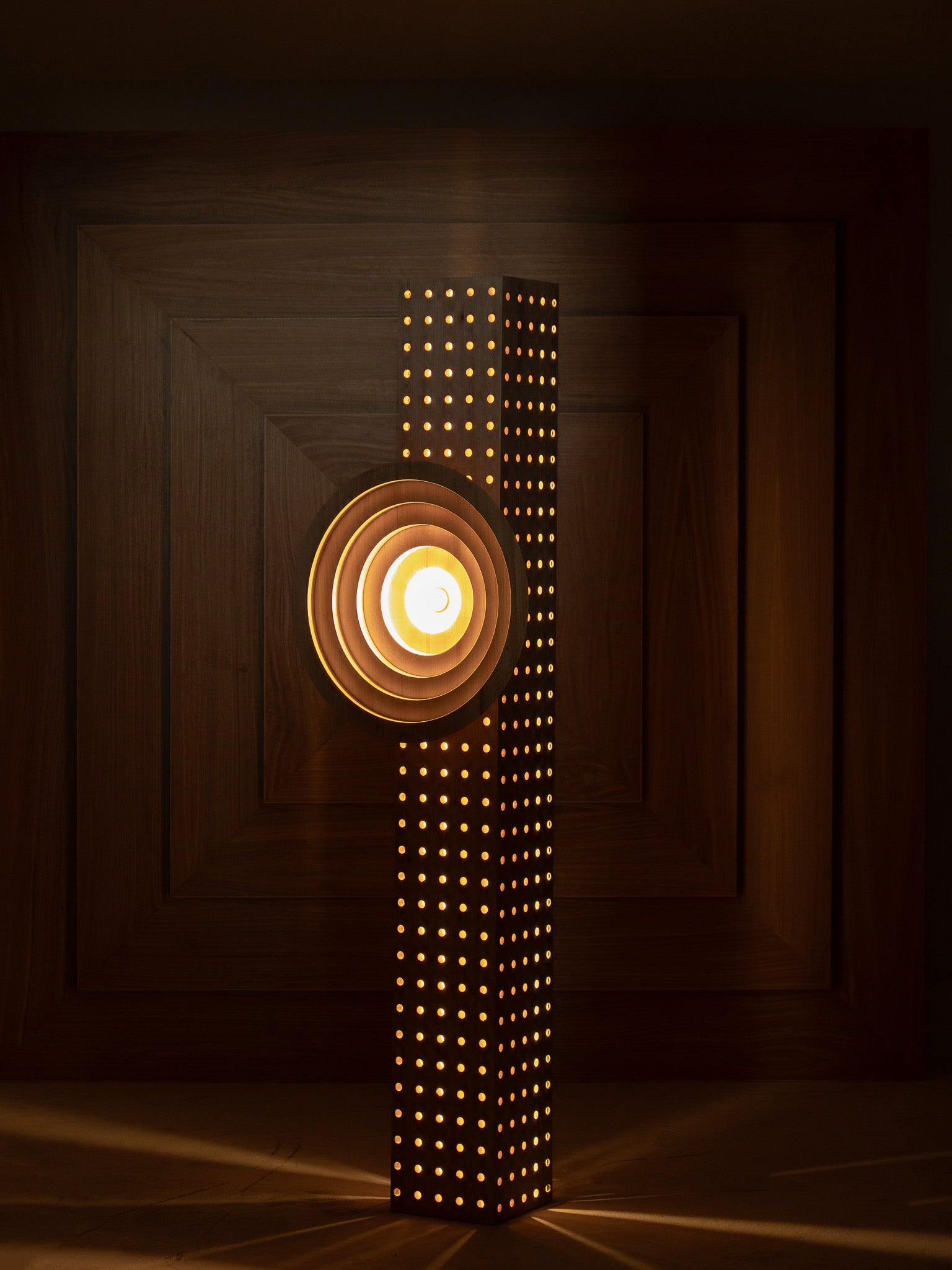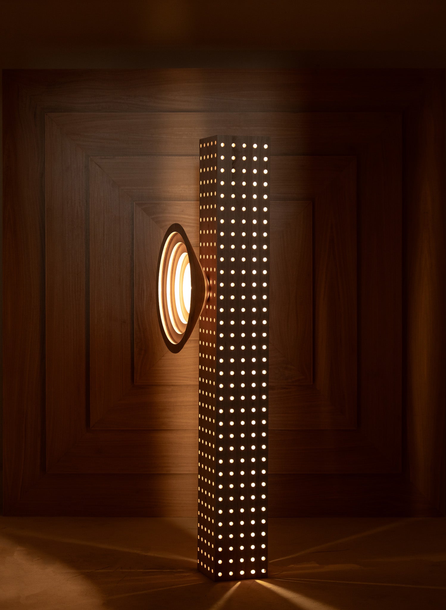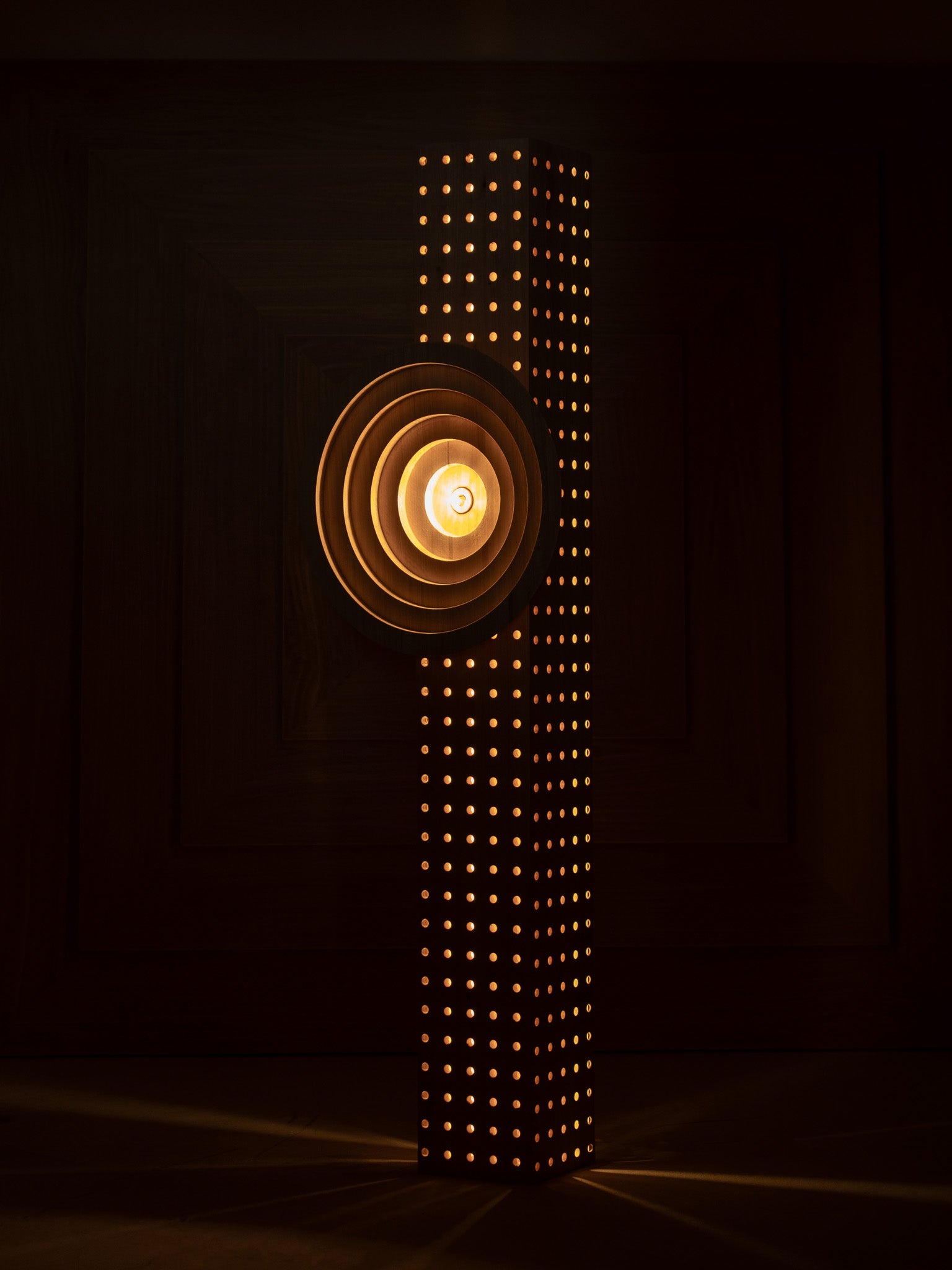 Sculptural lamp with hundreds of glowing dots - Bee wax finish natural treatment.